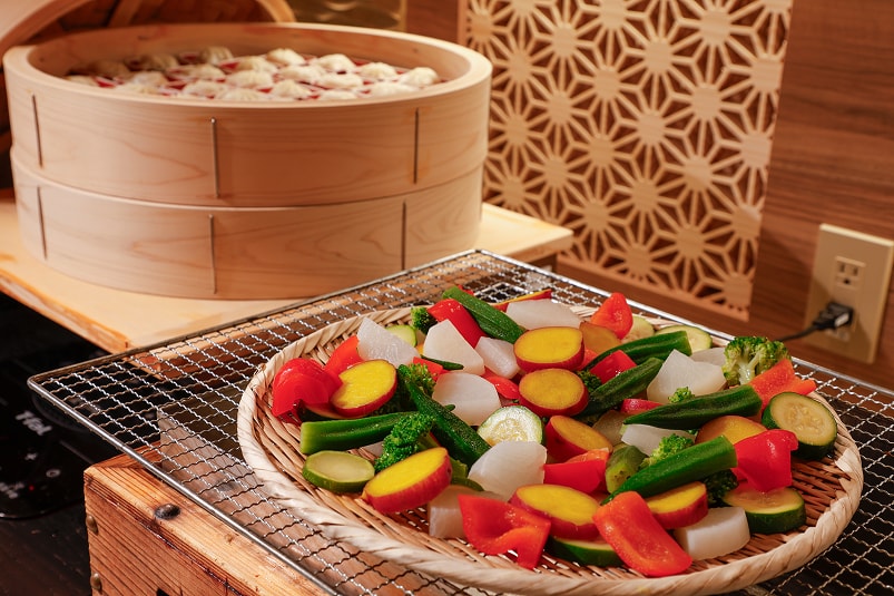 海と山、豊かな自然に囲まれた兵庫県は、四季折々の食材に恵まれた食の宝庫です。游月山荘では、旬の素材本来の味を最大限に引き出す「手作りの味」を大切にしております。ご夕食は、季節の彩りを好きなだけ楽しめる「創作和食ビュッフェ」にて。(※露天風呂付特別室「曲水亭」にご宿泊のお客様には、「部屋食会席」をご用意いたします)