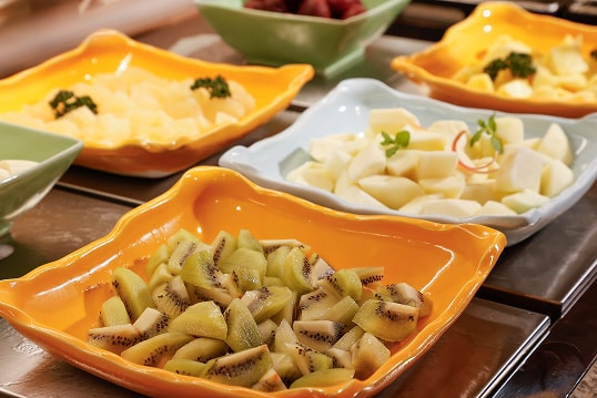 北は日本海、南に瀬戸内海、太平洋そして内陸部には丹波、播州、北摂三田と、食材が豊かな兵庫県の地元で採れた野菜等を中心に、その豊富な食材をふんだんに用いて「身土不二」「地産地消」「一物全体」をテーマにマクロビオテックの考えを取り入れた“健康”で“安全”な本格和食ビュッフェを正当日本料理職人が造り続けます。