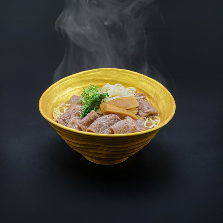 月光園自慢の「神戸牛とろ旨ラーメン」は、上質な神戸牛の旨味が溶け込んだスープと、とろけるような牛肉の食感が人気の一品です。ほかにも、あっさり醤油やコク深いとんこつなどの各種ラーメン、うどん・そばなど多数メニューをご用意しております。