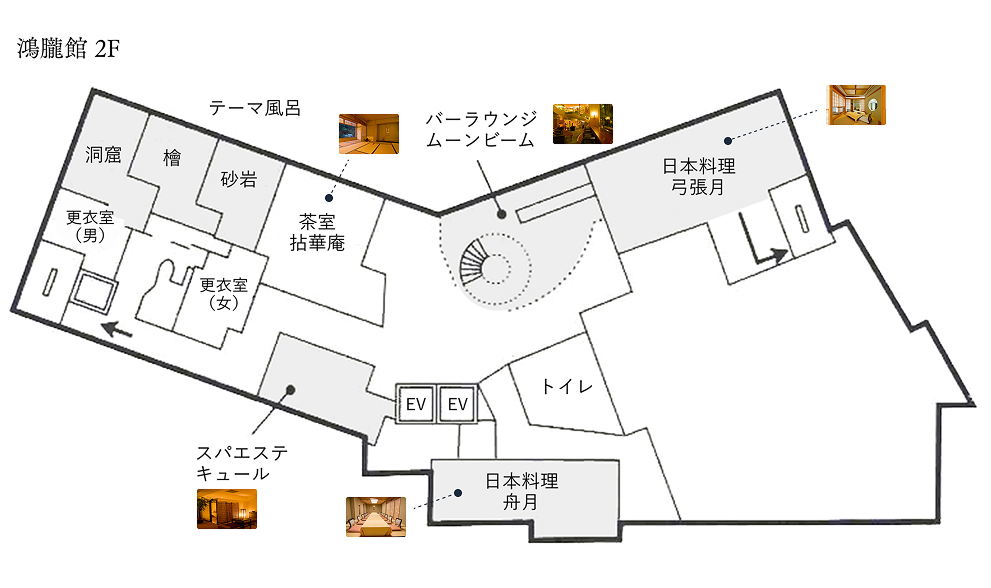 鴻朧館の館内には、落葉山の絶景を眺めながら過ごせるラウンジやスパ、大浴場など、上質なくつろぎを提供する施設が揃っています。滞在のひとときが、心豊かな思い出となりますように。