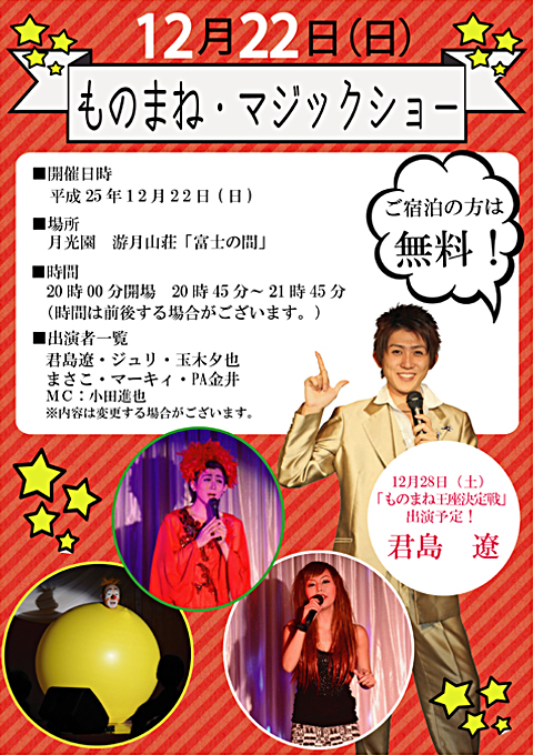 さて、12月22日(日)に開催される★ものまね・マジックショー★について、