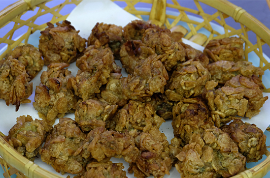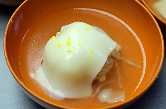 名前から察する通り(笑)、ミンチ肉のお団子を薄くスライスされたお餅でくるんでおります。