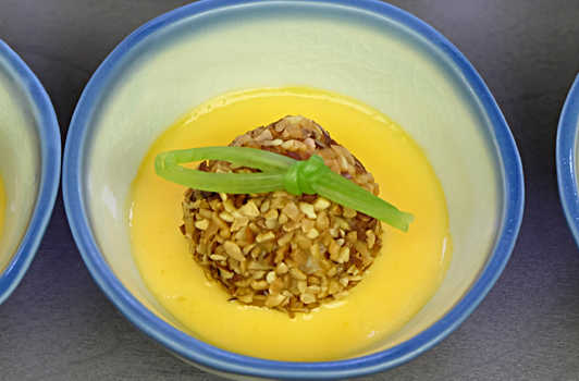 きれいな山吹色の雲丹ソースが、アーモンドの衣で揚げた優しいお味の海老芋にとても良く合います(*´艸`*)