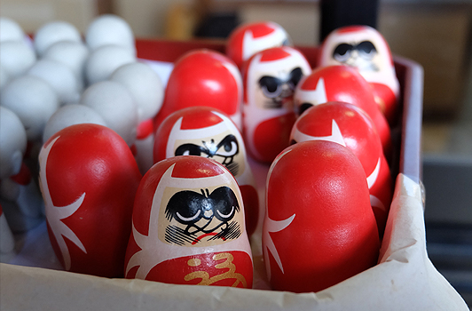 この「達磨おみくじ」、木の達磨人形の中におみくじが入っており、自分で好きな達磨を選ぶことができます。
