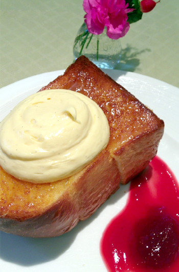 サクサクふわふわな厚切りトーストに、杏ジャムとバターを塗って焼き上げ、