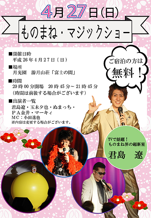 さて、来る4月27日(日)に開催されます★ものまね・マジックショー★!