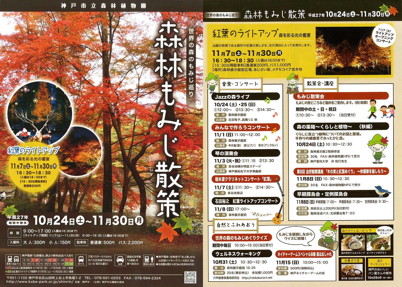 ★紅葉ナイトツアー(11/7,8)やスタンプラリー、手づくりリース体験など。