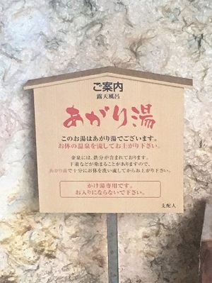 ↑ こちらは以前の「あがり湯」看板。少し小さめで、言語も日本語のみの為、