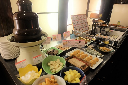 旅館のビュッフェでは珍しい、これだけの種類を誇るスイーツコーナー。