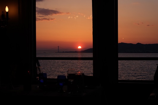 明石海峡大橋が夕暮れに包まれていてなんともムーディー。