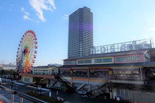 【16:50】出発直後の、デッキからの眺望です。間近に見えるモザイクと観覧車。