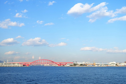 神戸大橋の赤と、空と海の青のコントラストがいい感じです。