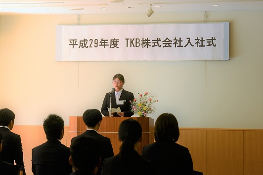 新入社員代表挨拶は、調理課に配属となる池田さん。