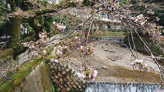 有馬川沿いの桜(ソメイヨシノ)。5~7分くらいは咲いているでしょうか。