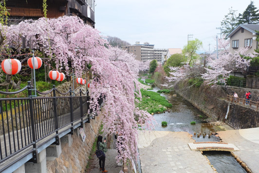 吉高屋さんの枝垂れ桜が桜のカーテンみたいになっていて絶好のカメラスポットに。