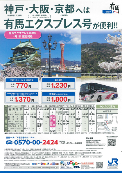 JR高速バス「有馬エクスプレス京都号」の開通により、非常に便利になりました!!!