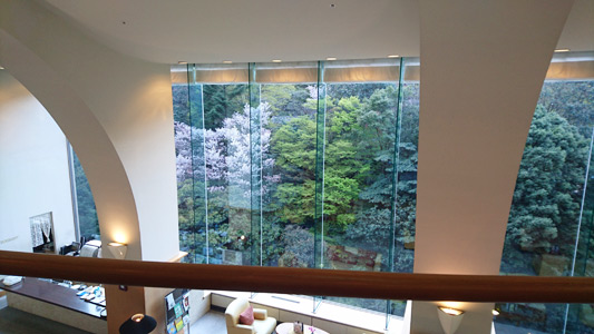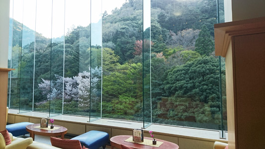 鴻朧館のロビーからまだ咲いている桜を見ることが出来ました。