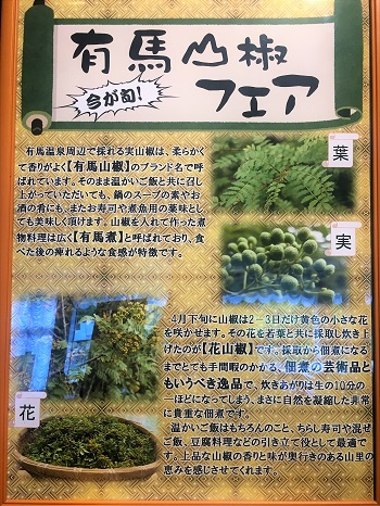 有馬周辺では山椒の花や実を食べる習慣があり、山椒を使用したお料理は