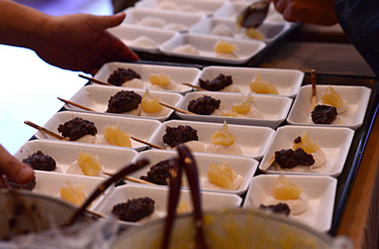 ・新米でついたお餅(2個)に柚子餡とつぶ餡をかけてお客様に無料でご提供いたします。