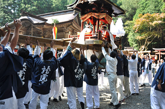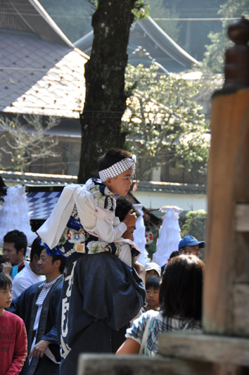 太鼓を叩く男の子は、地面に足をつけてはいけないのです。