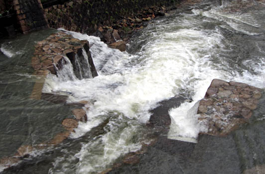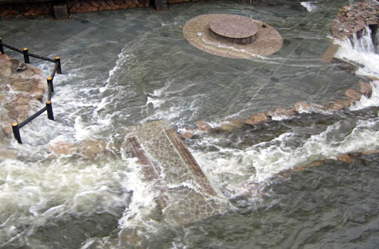 本来なら橋の下は歩行者が通る事も可能なのですが、今日は増水の影響で歩く場所すらなくなっています。
