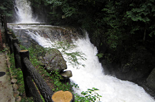 ※有馬温泉の名物『鼓ヶ滝』、この台風の影響でいつもより数倍迫力が増しています。