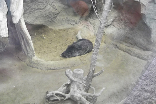 飼育員さんによると現在、繁殖期の為人目を気にして岩穴に籠もっているのだそう。