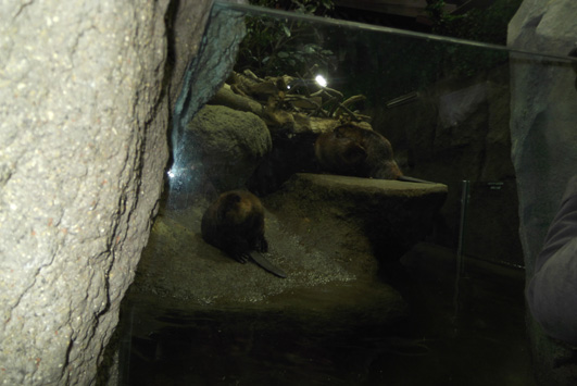 この展示場は約20mのオーバルになった水槽でビーバー達は行き止まることなく泳ぐことが出来ます。