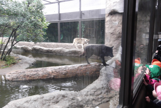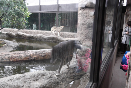 飼育員さん曰く、「オオカミだけでなくこのエリアの動物達は人目に慣れていないので