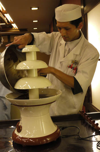 さて本日、月光園游月山荘の「月の座」にチョコレートフォンデュマシンがやってきました!