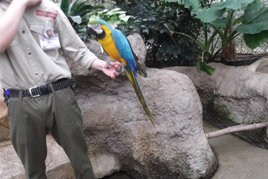 オウムは肩に乗せて写真を撮ることが出来ますよ。