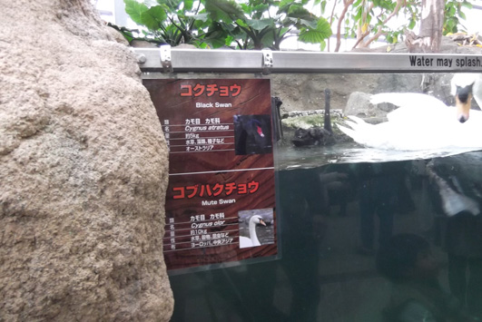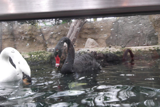 童話『白鳥の湖』の中では敵同士ですが、こうして仲良く泳いでおります。