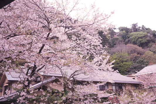川を挟んで游月山荘側の桜はまだ咲いているようです。