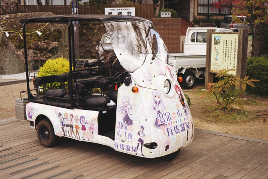 ↑の桜のすぐそばに温泉むすめのゴルフカート風三輪車を発見。