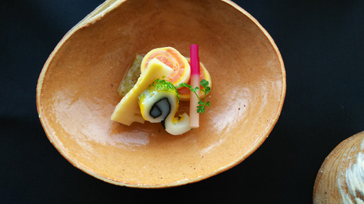 甘鯛で蕗を巻き周りに湯葉をつけ揚げたもの