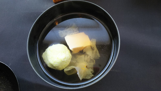 お椀の中でお花が咲いたようにふわふわと漂うのが白木茸。