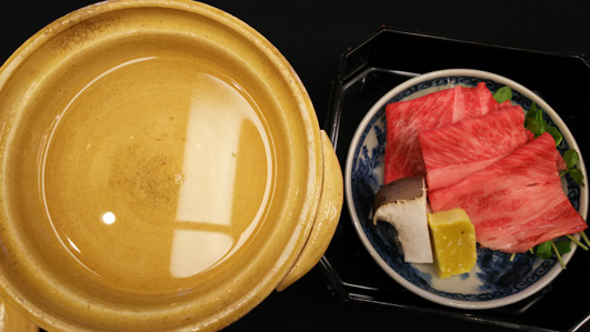・黒毛和牛の銀泉鍋(鶏スープ出汁の鍋出汁)