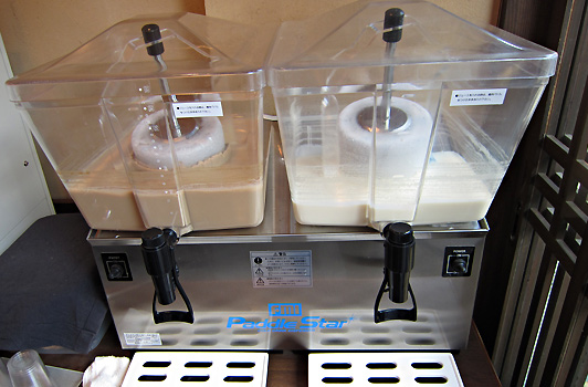 ※自家製の豆乳、「カフェオレ味」と「生姜蜂蜜」です。なかなか癖になる味ですよ♪(カフェオレは土日限定)