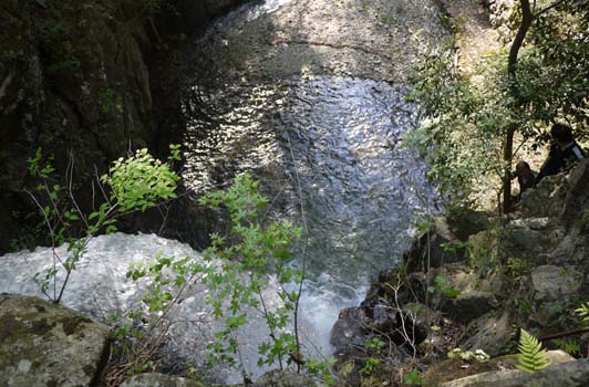 滝の横にある鎖やはしごをつたって上まで登のですが、