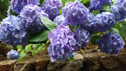 雨濡れついでに傘をさして鴻朧館の石垣の紫陽花も見てきました。