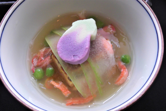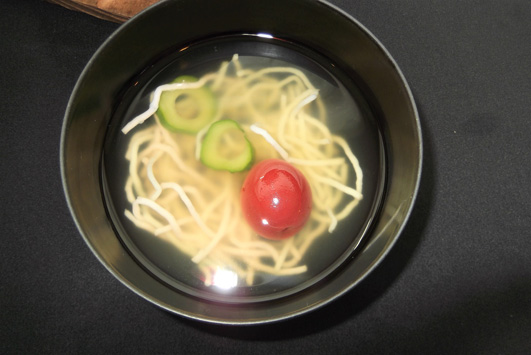 【煮物椀】の魚素麺は夏の定番の”素麺”を月光園風に仕上げたもの。