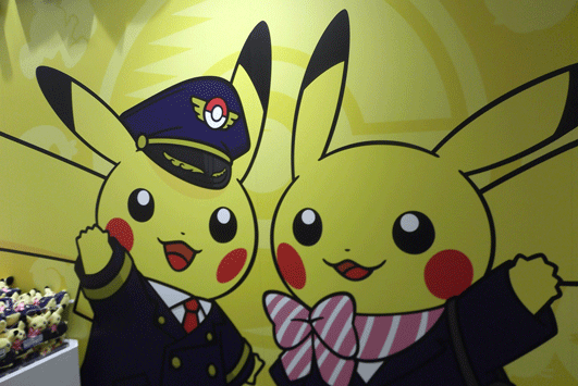 ピカチュウがパイロットとCAさんのコスチュームを着ている姿がかわいいです。