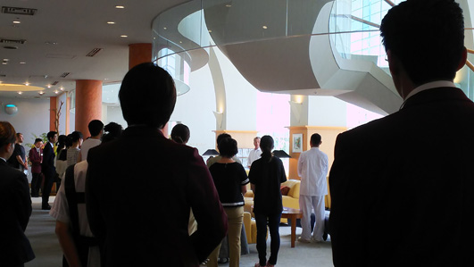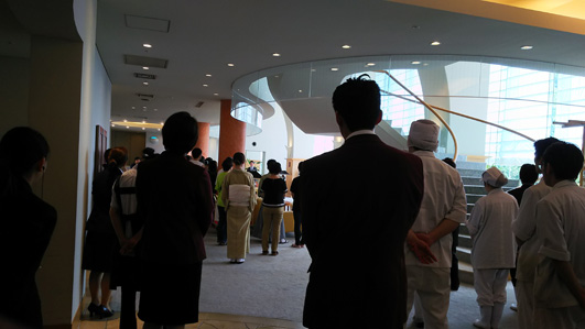 スタッフの誘導が問題なく行われているか客室で待機・確認する「お客様班」に分かれ、