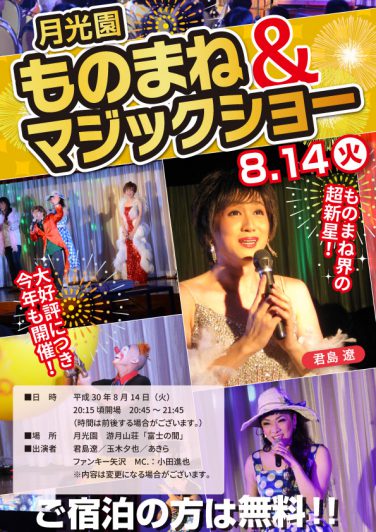 温泉にお料理、さらにものまねショーまで楽しめるのは月光園だけ♪