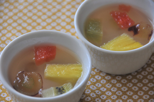 食材:パイナップル、葡萄、スイカ、キウイ、イナアガー、砂糖、レモン汁