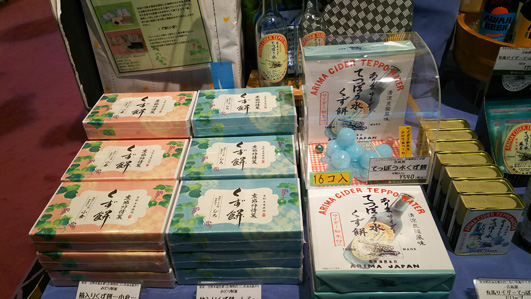 よく見ると、サイダーやビールの瓶・くず餅・かき氷のシロップ・有馬サイダーのグッズ(お菓子やキーホルダー)まで…