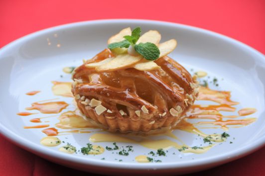 上はサクサクのパイ生地、下はタルトレットになっていて、焼き方の違う2種類の生地が楽しめます。