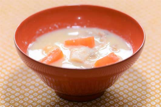 食材:酒粕、白味噌、短冊大根、人参、薄揚げ、蒟蒻、豚バラ、笹がき牛蒡