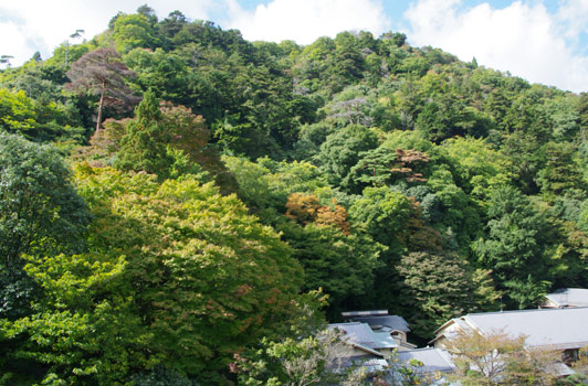 紅葉の名所にはこの条件をよく満たす山間部が多い。