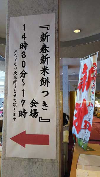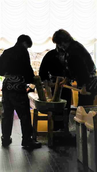 游月山荘のロビーでは、三が日の期間餅つきも行われていました。